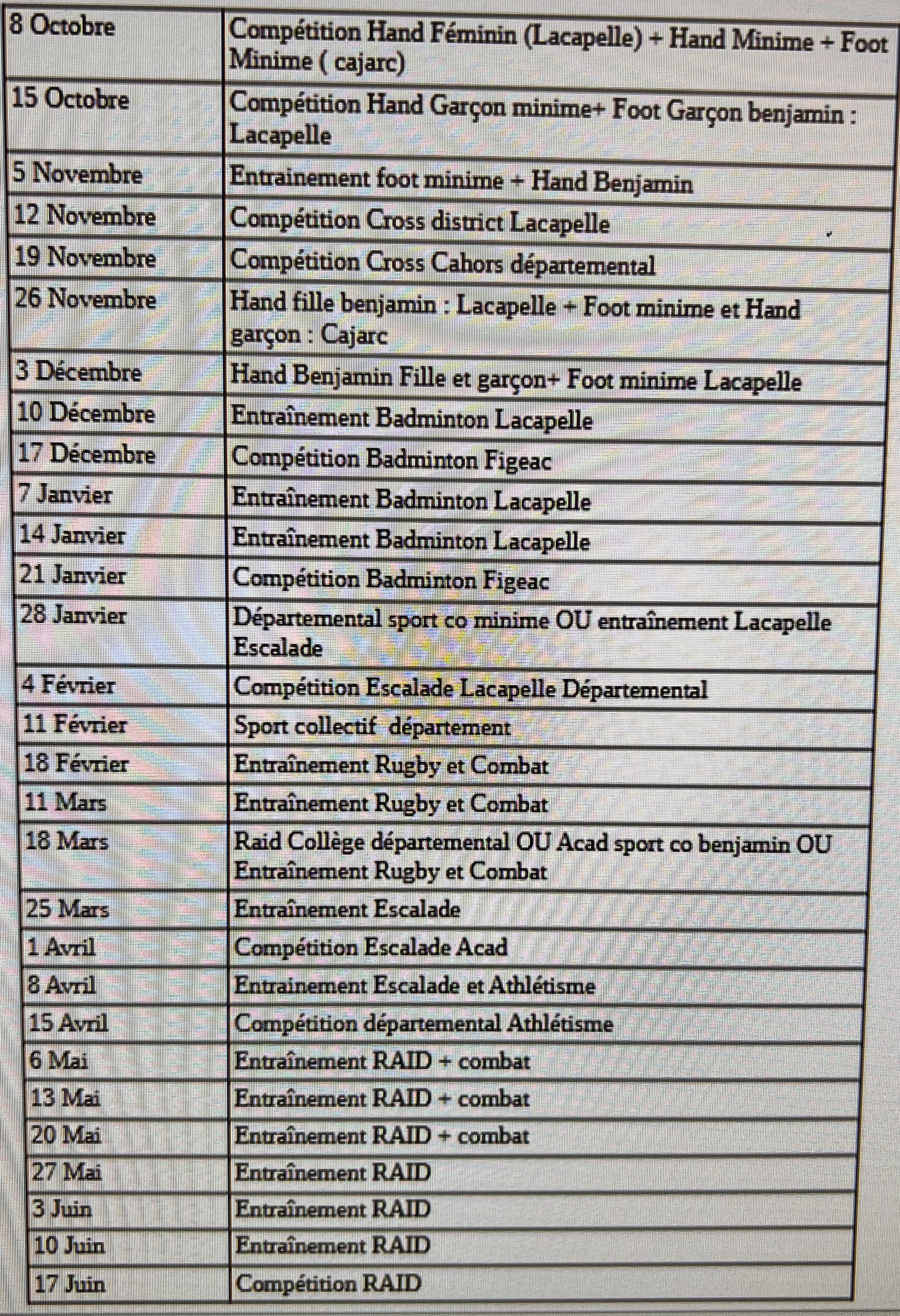 Calendrier AS 2025
